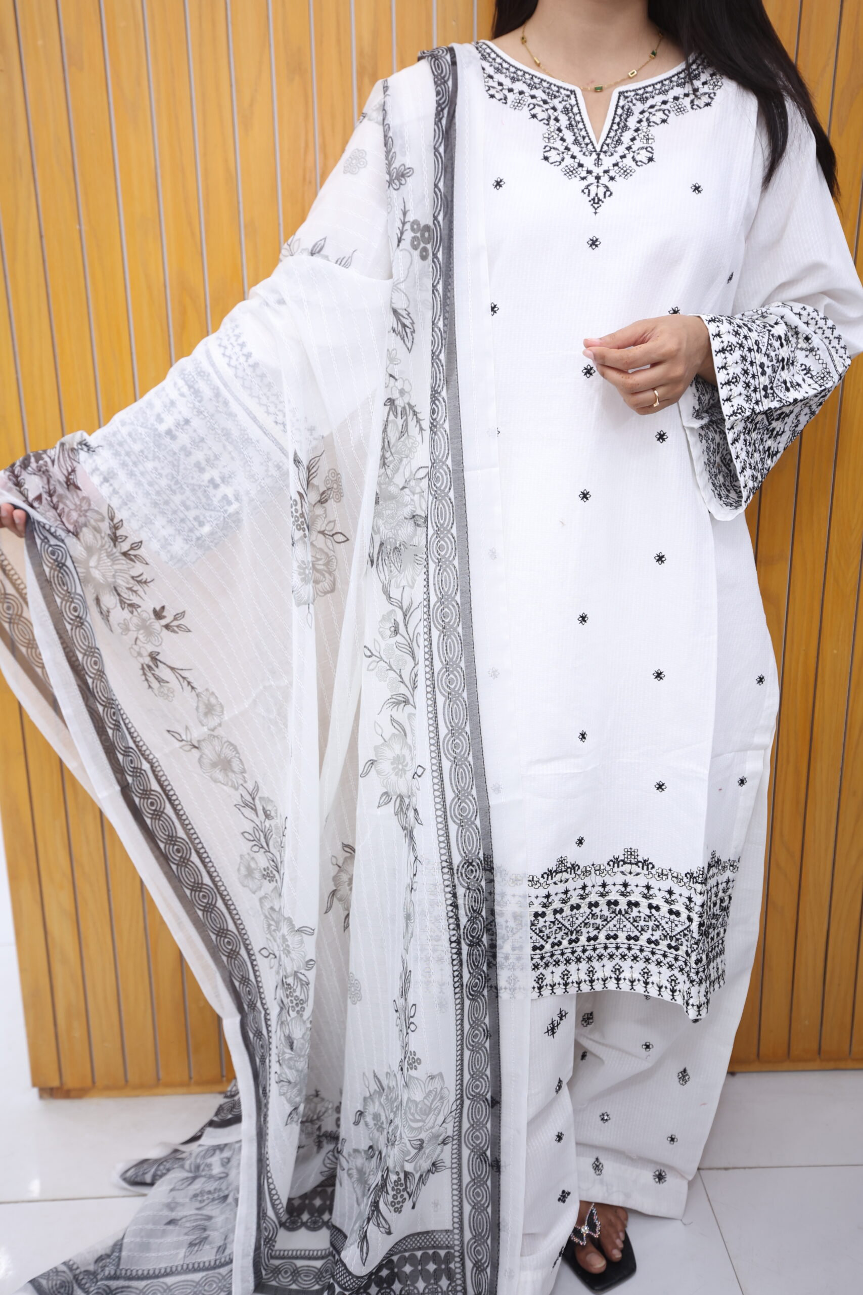 + Free ShippingRefresh your wardrobe with the timeless beauty of our White black Texture Lawn Suit – a perfect blend of elegance and comfort for the summer season. Crafted from premium-quality lawn fabric, this outfit offers a soft, breathable feel that keeps you cool and confident all day long.